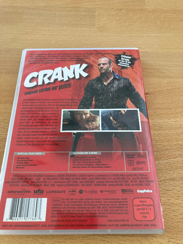 Ob Sie ein Fan von Hochgeschwindigkeits-Actionfilmen sind oder einfach einen Filmabend mit Spannung und Unterhaltung suchen, "Crank" ist die perfekte Wahl. Sichern Sie sich Ihre DVD noch heute und bereiten Sie sich auf ein unvergessliches Abenteuer vor, das Sie immer wieder erleben möchten. Ideal für Sammler und Enthusiasten von kultigen Actionfilmen. Holen Sie sich jetzt "Crank" nach Hause und erleben Sie Action, die Ihren Puls in die Höhe treibt wie nie zuvor!