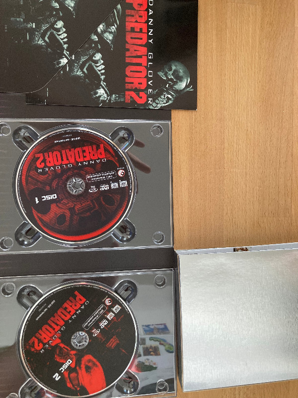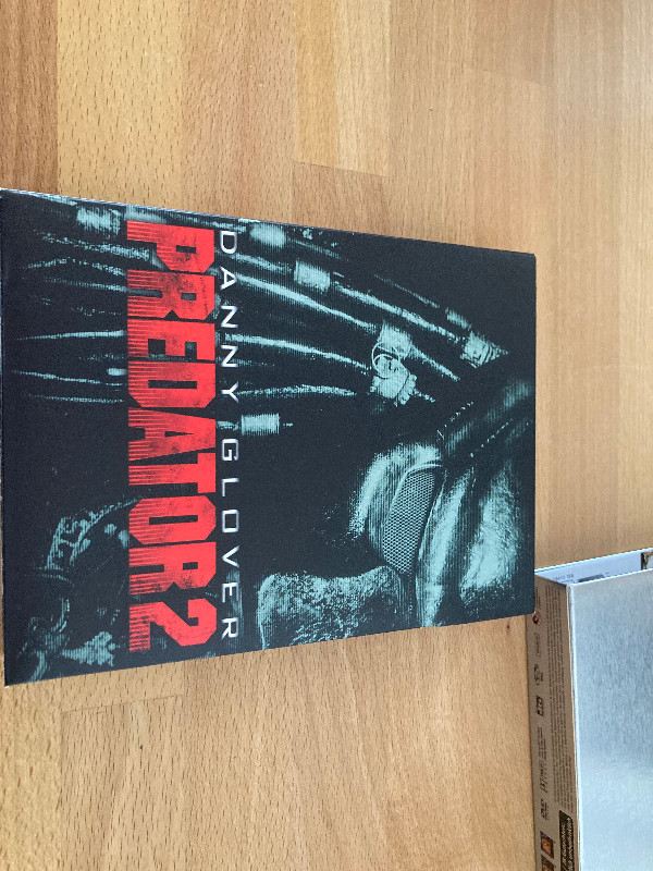 Die Century Cinedition kommt in einer auffälligen und kunstvoll gestalteten Hülle, die nicht nur ästhetisch ansprechend ist, sondern auch die düstere Stimmung des Films perfekt einfängt. Das Cover zeigt eindrucksvolle Bilder, die sofort erkennbar sind und die Essenz von "Predator 2" einfangen.