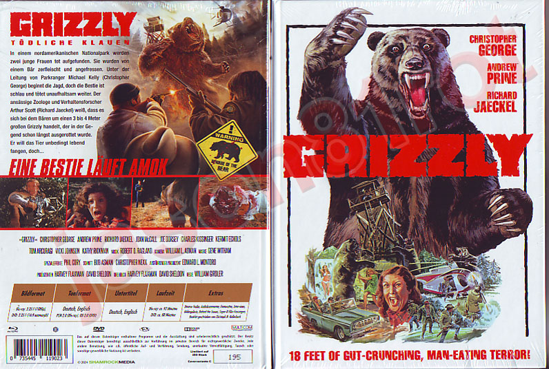 Der Film selbst, mit Christopher George, Andrew Prine und Richard Jaeckel in den Hauptrollen, erzählt die Geschichte eines riesigen Grizzlybärs, der in einem Nationalpark Jagd auf Menschen macht. Mit 18 Fuß voller "gut-crunching, man-eating terror", wie die aufsehenerregende Cover-Gestaltung verspricht, steht „Grizzly“ für eine aufregende Achterbahn der Emotionen. Genießen Sie zusätzlich die Extras, die tiefer in die Entstehung und den Einfluss dieses Horrorfilm-Klassikers eintauchen.