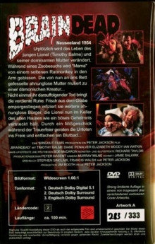 Braindead, auch bekannt unter dem Titel Dead Alive, gehört zu den kultigsten und blutigsten Horrorfilmen überhaupt. Unter der Regie von Peter Jackson, dem späteren Schöpfer der "Der Herr der Ringe" Trilogie, bietet dieser Film eine Mischung aus schwarzem Humor und extremer Splatteraction, die bis heute nichts von ihrer Faszination und Schockwirkung verloren hat. Die Fans des Genres schätzen besonders die unerbittlichen und kreativen Splattereffekte, die den Film seinerzeit revolutionierten.