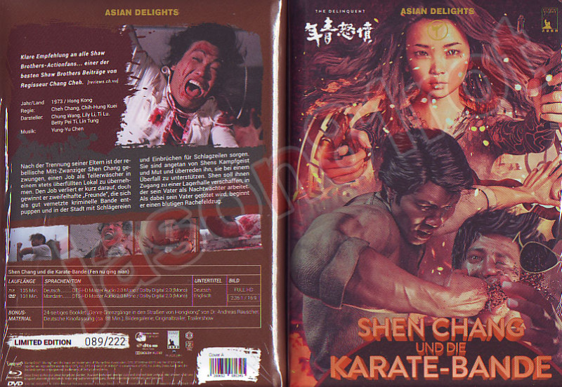 Das Design des Mediabooks ist durch seine detailreichen Illustrationen, die sowohl auf dem Cover als auch auf den beiliegenden Artworks zu sehen sind, aufmerksamkeitsstark und atmosphärisch gestaltet. Diese limitierte Auflage, hier speziell die Nummer 089 von nur 222 Exemplaren, macht "Shen Chang und die Karate-Bande" zu einem echten Sammlerstück.