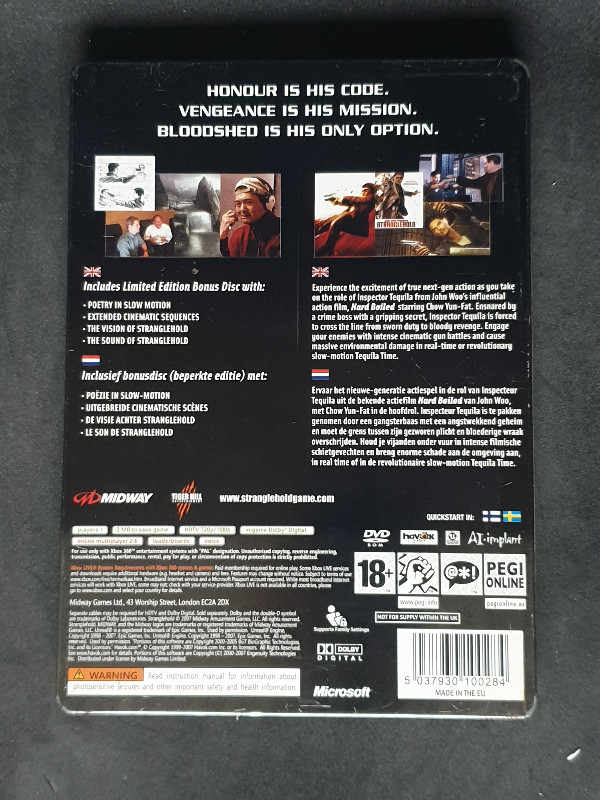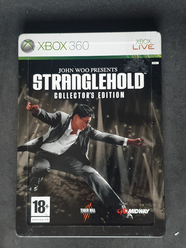 Das Cover der "Stranglehold - Collector´s Edition" zeigt den Protagonisten in einer dynamischen Pose während einer Schießerei, was die hohe Intensität und das schnelle Tempo des Spiels widerspiegelt. Die Grafik dieser Edition ist ebenso hochwertig und detailliert, was die Spielerfahrung noch immersiver macht.