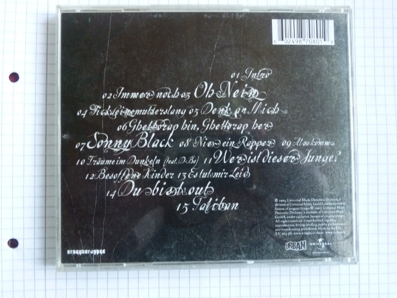 Mit dieser CD erwerben Sie nicht nur Musik, sondern ein Stück Kulturgeschichte, perfekt für Sammler und Liebhaber des Genres. "Carlo Cokxxx Nutten II" ist ein Muss für Fans von Bushido und Liebhaber von tiefgehenden Texten und kraftvollen Beats. Lassen Sie sich diese Gelegenheit nicht entgehen und erweitern Sie Ihre Musiksammlung um dieses bedeutende Album.