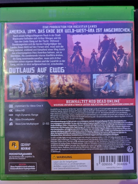 Verkaufe das epische Western-Abenteuer Red Dead Redemption 2 für die Xbox One. Das Spiel befindet sich in sehr gutem Zustand, Disc ohne Kratzer, Hülle inklusive.