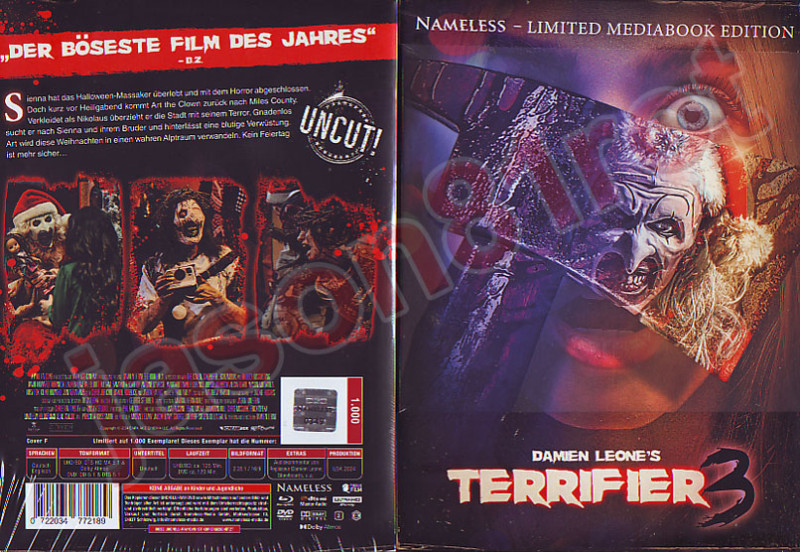Die Packung enthält zudem eine Vielzahl an Extras, die jeden Horror-Liebhaber begeistern werden. Mit einer limitierten Auflage von nur 500 Exemplaren weltweit, bietet dieses Mediabook nicht nur eine exzellente filmische Erfahrung, sondern stellt auch eine wertvolle Bereicherung für jede Sammlung dar. Sichern Sie sich Ihr Exemplar von "Terrifier 3" und bereiten Sie sich auf eine blutige Weihnachtszeit vor, die Sie so schnell nicht vergessen werden!