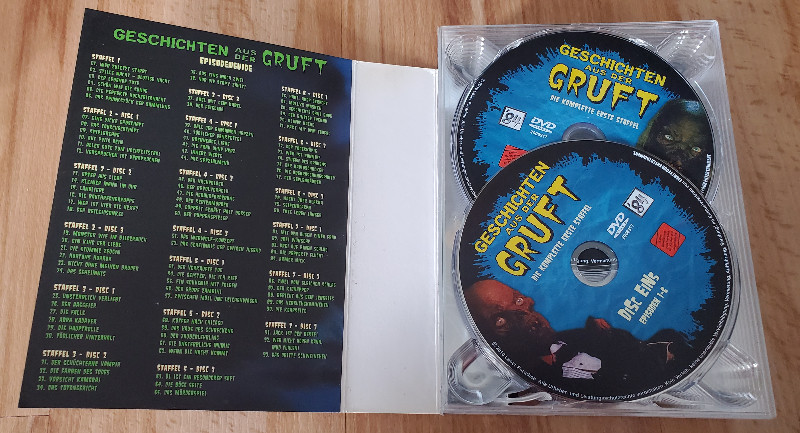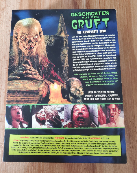 Die künstlerisch gestaltete Box dieser Sammlung ist ein wahres Sammlerstück und ziert ein prachtvolles Artwork, das die Essenz der Serie einfängt. Die Abbildungen auf dem Cover zeigen eine Vielzahl an Charakteren und Szenen, die symbolisch für die spannenden und oft moralischen Geschichten stehen, die "Geschichten aus der Gruft" so einzigartig machen.