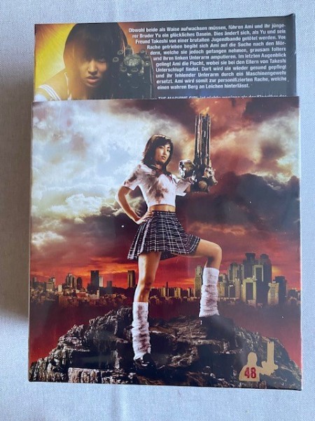 Erleben Sie puren Nervenkitzel und Adrenalinschübe mit "The Machine Girl GOLD EDITION Mediabook Blu-ray". Diese exklusive Gold Edition ist ein Muss für jeden Horror- und Actionfilm-Enthusiasten. Begleiten Sie Ami, die schuluniformtragende Rächerin, auf ihrem blutrünstigen Feldzug gegen eine Gang skrupelloser Yakuza, die ihr Leben zerstört haben. Mit ihrer tödlichen Waffe, einer montierten Maschinengewehrprothese, setzt sie ihre blutige Mission fort, in einer Welt, die von Gewalt und Rache beherrscht wird.