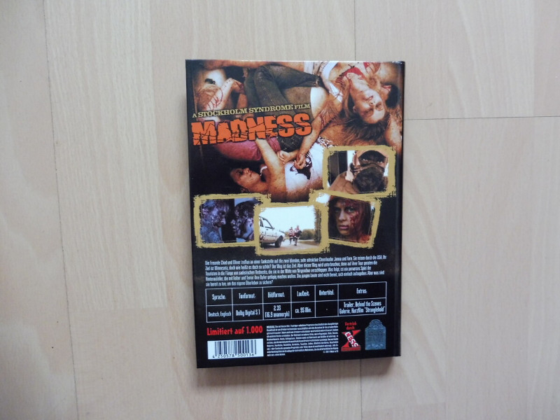 "Madness" ist ein fesselnder Horrorfilm, der unter dem Label Stockholm Syndrome bekannt wurde. Diese besondere Edition enthält nicht nur den Film in seiner ungekürzten Fassung, sondern präsentiert ihn auch in einer einzigartigen, sammelwürdigen Verpackung. Die limitierte kleine Hartbox hebt sich deutlich von herkömmlichen DVD-Hüllen ab und macht dieses Stück zu einem echten Sammlerobjekt.
