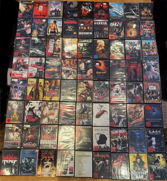Große Sammlung Horror und Actionfilme. Leider kann ich nur 3 Bilder hochladen. Habe noch vier weitere.