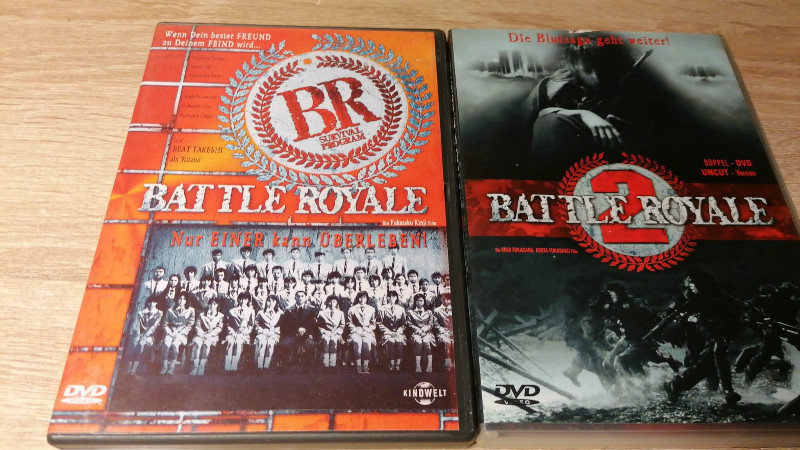 In "Battle Royale", dem ersten Film dieses packenden Sets, wird eine Gruppe von Schülern auf eine abgelegene Insel geschickt, wo sie gezwungen sind, an einem grausamen Spiel teilzunehmen: Kämpfen bis nur noch einer übrig bleibt. Dieses Dystopische Abenteuer mischt aufsehenerregende Action mit tiefgehender Kritik an sozialen und politischen Strukturen, was es zu einem Kultklassiker gemacht hat.
