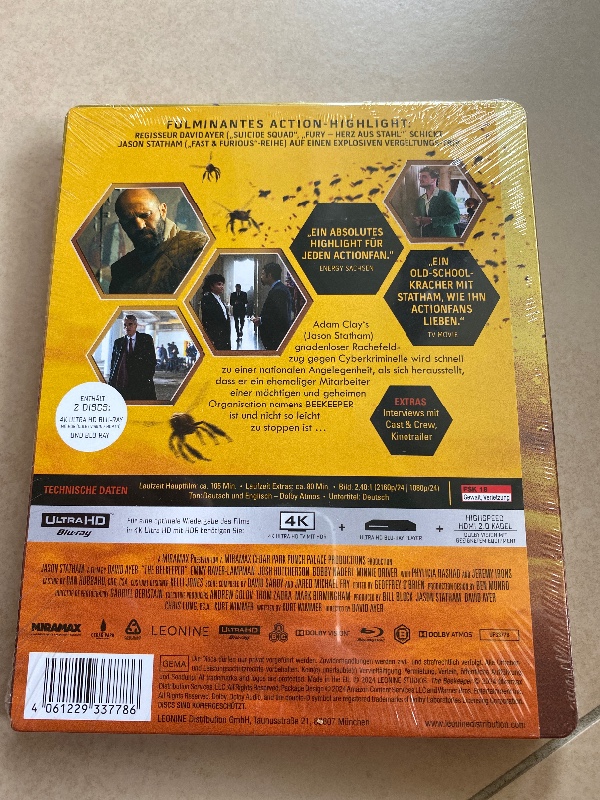 Ob Sie ein leidenschaftlicher Filmfan sind oder einfach ein unvergessliches Filmerlebnis suchen, "The Beekeeper" in dieser exklusiven Steelbook Edition ist die perfekte Ergänzung Ihrer Blu-ray-Sammlung. Steigern Sie Ihr Heimkino-Erlebnis mit der Klarheit und intensiven Action, die nur 4K UHD bieten kann. Machen Sie sich bereit für ein Abenteuer, das Sie so schnell nicht vergessen werden!