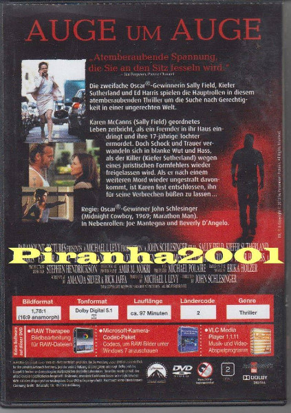 Für Liebhaber von gut konstruierten Krimis und intensiven Thrillern ist diese DVD ein Muss. Erleben Sie die ungeschnittene Version von „Auge um Auge“, die Ihnen ein authentisches und unvergessliches Filmvergnügen verspricht. Perfect für einen spannenden Abend zu Hause!