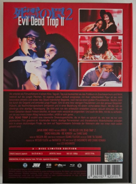 Diese Editionen von "Evil Dead Trap" 1 und 2 sind perfekt für alle Horror-Enthusiasten, die das Schaurige und das Makabre lieben. Erleben Sie den Thrill und das Blutvergießen, das Fans weltweit begeistert hat. Bereiten Sie sich darauf vor, auf eine Reise in die Dunkelheit entführt zu werden, die Sie so schnell nicht vergessen werden. Seien Sie schnell – diese Mediabooks sind streng limitiert und begehrte Sammlerstücke!