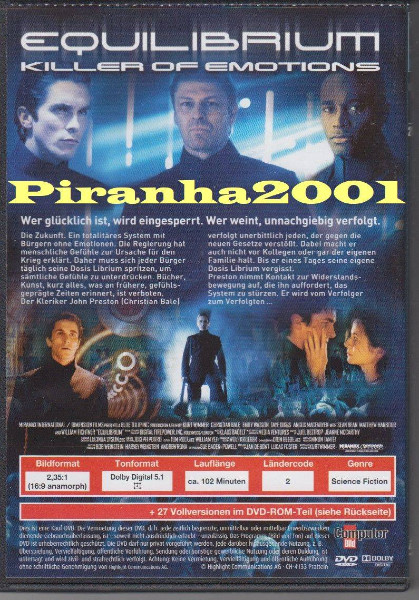 Tauchen Sie ein in eine dystopische Zukunft, in der Emotionen verboten sind und die Welt von unerbittlichen Gesetzen beherrscht wird. "Equilibrium - Killer of Emotions", jetzt verfügbar als UNCUT-Version auf DVD, ist ein packender Sci-Fi-Thriller, der Sie nicht mehr loslassen wird.