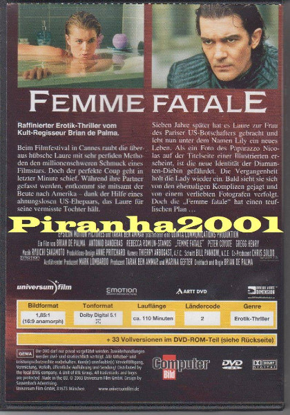 Als Teil der Computer Bild DVD-Kollektion, ist diese Ausgabe von „Femme Fatale“ ein Muss für jeden Sammler und Film-Enthusiasten. Nicht nur die packende Handlung, sondern auch die außergewöhnlich gestaltete DVD-Hülle, die das mystische und verführerische Thema des Films widerspiegelt, macht sie zu einem Highlight in jeder Sammlung.