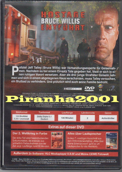 Versäumen Sie nicht die Chance, "Hostage - Entführt" zu Ihrer DVD-Sammlung hinzuzufügen. Ein Muss für alle, die spannende Kinoabende mit Gänsehautgarantie lieben. Holen Sie sich jetzt Ihre Kopie und erleben Sie Thrillertainment der Extraklasse!