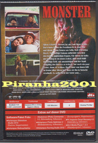Tauchen Sie ein in die dunkle und fesselnde Welt von „Monster“, ein herausragender Film, der das wahre Leben von Aileen Wuornos auf die Leinwand bringt. Dieser kultige Thriller, präsentiert von den talentierten Schauspielern Charlize Theron und Christina Ricci, ist ein Muss für jeden Fan von intensiven dramatischen Geschichten.