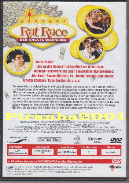 Tauchen Sie ein in ein urkomisches Abenteuer mit der Komödie "Rat Race - Der nackte Wahnsinn", jetzt in der ungeschnittenen Fassung auf DVD. Diese rasante und verrückte Komödie, unter der Regie von Jerry Zucker, verspricht nicht nur Lachen vom Anfang bis zum Ende, sondern auch eine Starbesetzung, die ihresgleichen sucht.