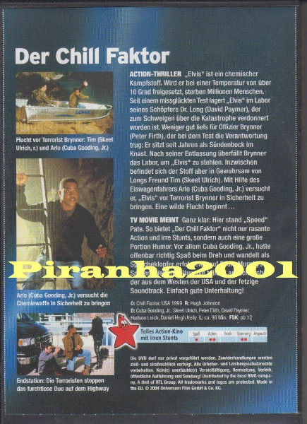 Tauchen Sie ein in die Welt voller Action und Hochspannung mit der DVD-Ausgabe des Films "Der Chill Faktor" in der UNCUT-Version, präsentiert in der TV Movie Edition 02/05. Dieser packende Thriller, der mit den Talenten von Cuba Gooding Jr. und Skeet Ulrich brilliert, sorgt für einen nervenzerreißenden Filmabend.