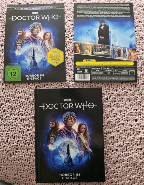 biete die Folgen "Horror im E-Space" (Staffel 18)" aus der Kultserie "Doctor Who" auf Blu Ray und DVD im limitierten und nummerierten 3-Disc Mediabook.