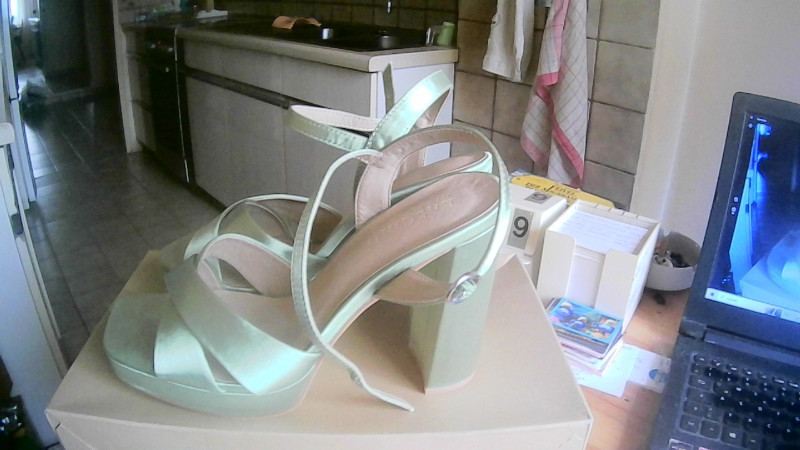 DAMEN HIGH HEELS, GRÖßE 39, MARKE: LASCANA, APFELGRÜN, GLÄNZEND, BLOCKABSATZ 18cm HÖHE. NEU MIT KARTON. UVP IST 129,95 EURO.