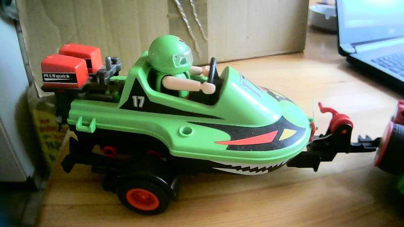 PLAYMOBIL JEEP MIT ANHÄNGER, SCHNELLBOOT UND 2 FIGUREN, NEU UND UNBESPIELT, AUSSTELLUNGSSTÜCK, FIXPREIS PLUS VERSANDKOSTEN.