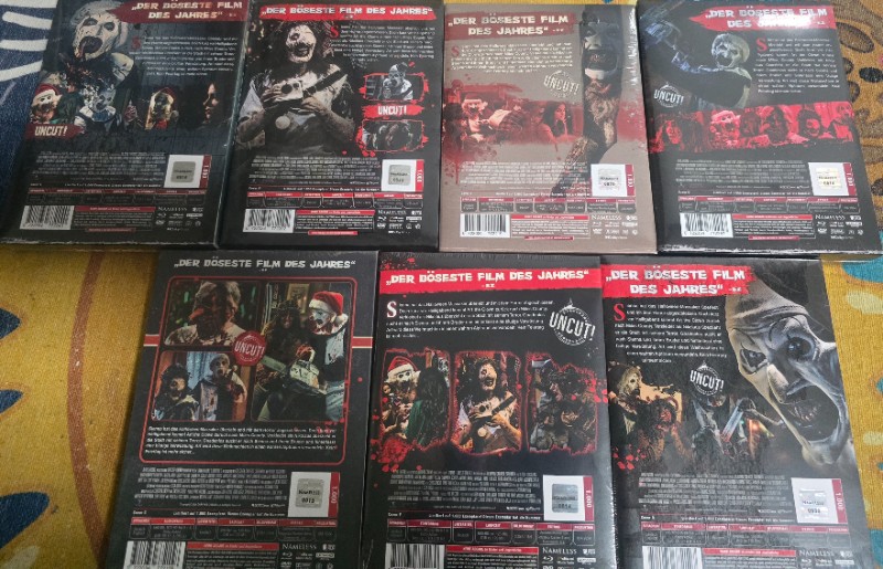 Ich verkaufe von Terrifier 3 ein Paket bestehend aus 7 Mediabooks von nameless