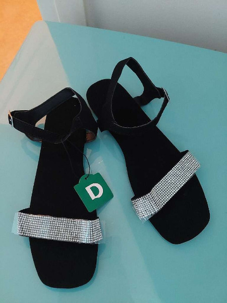 Tauchen Sie ein in die Welt der Eleganz mit diesen wunderschönen Damen Sandalen, perfekt für jede Gelegenheit, bei der Sie einen bleibenden Eindruck hinterlassen möchten. Diese neuen Schuhe in Größe 39 verzaubern durch ihre schlichte Eleganz, kombiniert mit funkelnden Strasssteinen, die jedem Outfit einen Hauch von Glamour verleihen. Ob bei einem festlichen Anlass oder einem gemütlichen Abendessen, diese Sandalen versprechen Komfort und Stil. Der praktische Fersenriemen bietet optimalen Halt, während das weiche Fußbett jedem Schritt eine sanfte Unterstützung gibt. Zudem sind sie ''''neu ohne Karton'''', was Ihnen die Sicherheit gibt, ein ungetragenes Produkt zu erwerben. Nicht nur ihre Funktionalität, sondern auch ihr ansprechendes Design macht diese Sandalen zu einem absoluten Must-Have für Ihre Garderobe.