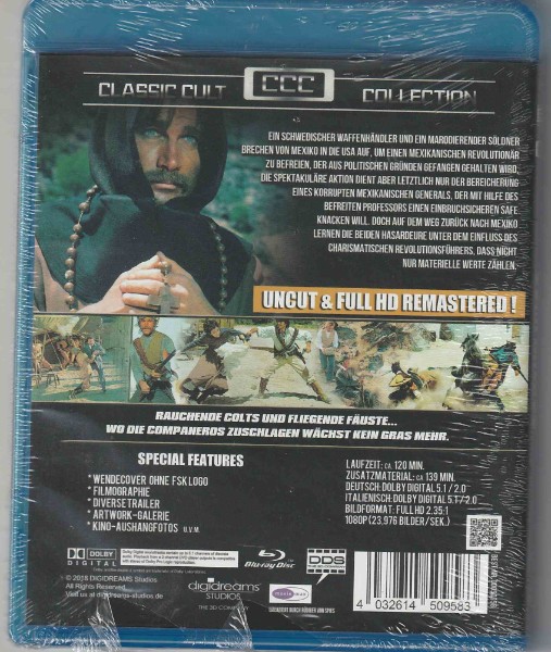 Die Blu-ray bietet eine reichhaltige Darstellung der turbulenten Geschichte zweier ungleicher Revolutionäre, die sich zusammentun müssen, um eine politische Mission in Mexiko zu erfüllen. Mit spannungsgeladenen Duellen, tiefgreifenden Charakterentwicklungen und einer Prise Humor ist "Compañeros" ein Film, der Sie nicht nur unterhalten, sondern auch tief bewegen wird. Ein Muss in jeder Sammlung für Liebhaber des Klassischen und einer Qualität, die man in der FSK 16-Freigabe genießen kann!
