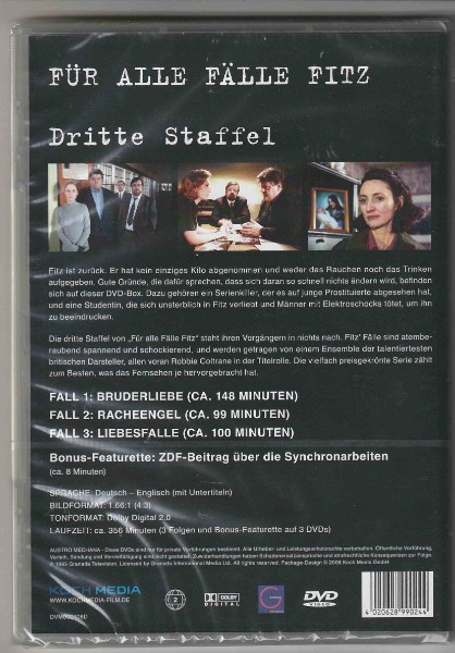 Fitz ist zurück. Er hat kein einziges Kilo abgenommen und weder das Rauchen noch das Trinken aufgegeben. Gute Gründe, die dafür sprechen, dass sich daran so schnell nichts ändern wird, befinden sich auf dieser DVD-Box. Dazu gehören ein Serienkiller, der es auf junge Prostituierte abgesehen hat, und eine Studentin, die sich unsterblich in Fitz verliebt und Männer mit Elektroschocks tötet, um ihn zu beeindrucken. Die dritte Staffel von "Für alle Fälle Fitz" steht ihren Vorgängern in nichts nach. Fitz Fälle sind atemberaubend spannend und schockierend, und werden getragen von einem Ensemble der talentiertesten britischen Darsteller, allen voran Robbie Coltrane in der Titelrolle. Die vielfach preisgekrönte Serie zählt zum Besten, was das Fernsehen je hervorgebracht hat.