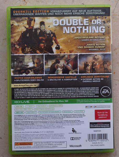 Bereiten Sie sich auf ein actiongeladenes Abenteuer vor mit "Army of Two: The Devil''''''''''''''''''''''''''''''''''''''''''''''''''''''''''''''''''''''''''''''''''''''''''''''''''''''''''''''''''''''''''''''''s Cartel", exklusiv für die Xbox 360. Diese Overkill Edition verspricht nicht nur Standard-Spielspaß, sondern auch erweiterte Inhalte, die Ihnen den Atem rauben werden.