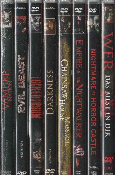 Tauchen Sie ein in ein Universum des Schreckens mit der "8x DVD Horror-Kollektion", das ultimative Paket für jeden Horrorfan. Diese sorgfältig zusammengestellte Auswahl von acht faszinierenden Horrorfilmen garantiert Ihnen nervenaufreibende Abende voller Spannung und Angst. Jede DVD dieser Kollektion kostet im Einzelverkauf 3,50 EUR und ist somit eine günstige Möglichkeit, Ihre Sammlung auszubauen oder einen gruseligen Filmabend zu veranstalten.