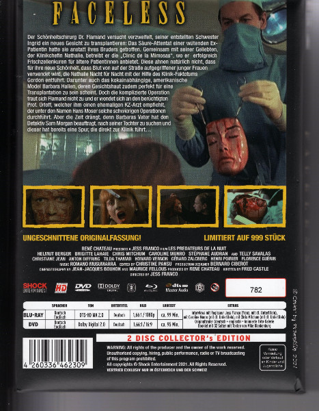 Erleben Sie die Qualität eines liebevoll gestalteten Sammlerstücks, das sich ideal für die ausgedehnten Filmabende eignet. Ergänzen Sie Ihre Sammlung um dieses Highlight und genießen Sie die erschreckende Brillanz von "Faceless" in Ihrer eigenen Heimkino-Oase.
