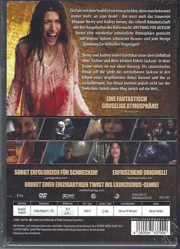 Entdecken Sie die fesselnde Welt des Horror-Genres mit der DVD "Anything for Jackson", jetzt brandneu und originalverpackt. Dieser Film, gekennzeichnet mit einer FSK 18-Freigabe, verspricht intensives Gänsehaut-Feeling und ist sicherlich nichts für schwache Nerven. "Anything for Jackson" ist ein herausragender Film in der Welt des Horrors, perfekt für Fans, die auf der Suche nach tiefgründiger Spannung und unvorhersehbaren Wendungen sind.