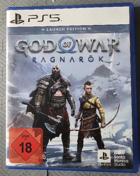 God of War Ragnarök für die Playstation 5/PS5. Es befindet sich in sehr guten Zustand. Keine Beschädigungen an CD oder Cover. Wie auf diesem Bild handelt es sich um eine USK18 Fassung. Alle Codes wurden schon eingelöst.