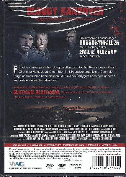 „Bloody Hangover“ verspricht eine unkonventionelle Perspektive auf das allseits bekannte Thema des Junggesellenabschieds. Der Film spielt mit Grusel-Elementen und schockerfüllten Wendungen, die dazu bestimmt sind, auch den hartgesottensten Horrorfan zu überraschen. Das Motto „Junggesellenabschied etwas anders“ bereitet den Zuschauer auf eine unerwartete und furchteinflößende Handlung vor.