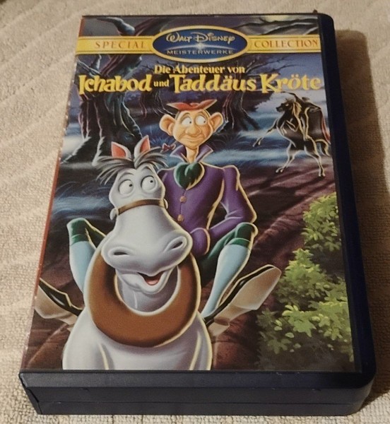 Die VHS-Hülle zeichnet sich durch ihre leuchtenden Farben und das charakteristische Kunstwerk des schelmischen Tadäus Kröte und des scheuen Ichabod Crane aus. Sammler und Disney-Liebhaber werden von der hochwertigen Präsentation der Meisterwerke Collection begeistert sein, die nicht nur ein Blickfänger in jedem Regal ist, sondern auch eine perfekte Kombination aus Unterhaltung und Sammlerwert darstellt.
