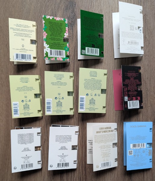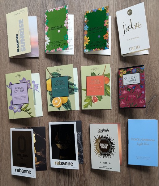 Ich verkaufe die hier abgebildeten 12 Parfümproben, diese neu und unbenutzt sind. Die Füllmenge variiert von 1,0 ml bis 1,5 ml.