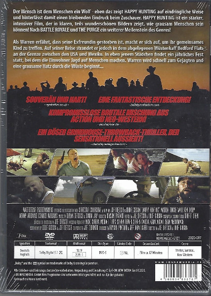 "Happy Hunting" zieht dich in einen gnadenlosen Überlebenskampf, der die Intensität von "The Purge" mit der Rohheit von "Battle Royale" kombiniert. Ein Film, der als intelligent, brutal und absolut sehenswert beschrieben wird. Die Geschichte folgt einem entfremdeten Drifter, der wider Willen in einem grausamen Spiel um Leben und Tod in der Wüste von Mexiko feststeckt. Während das jährliche Event in der Kleinstadt beginnt, muss unser Protagonist nicht nur gegen andere Teilnehmer bestehen, sondern auch gegen seine inneren Dämonen kämpfen.
