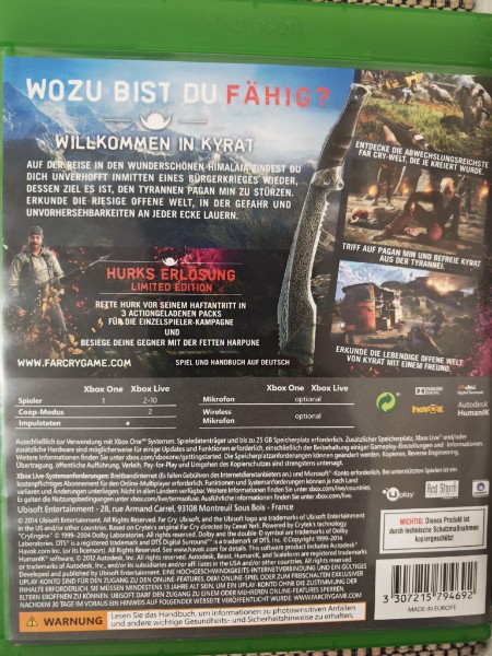 Leg jetzt los und erlebe eines der spannendsten Spiele auf der Xbox One! Dein Abenteuer wartet bereits auf dich. Hol dir jetzt "Far Cry 4 - Limited Edition" und tauche in eine Welt ein, die du so schnell nicht vergessen wirst.