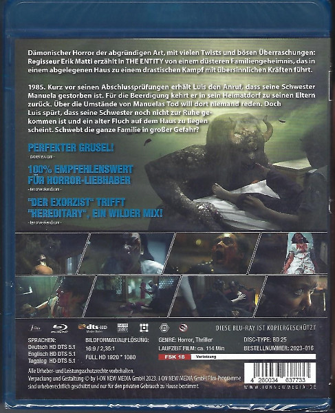 Tauchen Sie ein in die dunkle Welt von "The Entity", einem Meisterwerk des Horrorgenres, das jetzt in brillanter Blu-ray-Qualität erhältlich ist. Entdecken Sie eine Geschichte, die Sie an den Rand Ihres Sitzes fesseln wird, mit einer Tiefe und Intensität, die nur das Blu-ray-Format bieten kann. "The Entity" ist ein Film von dem renommierten Regisseur Erik Matti, der für seine fesselnden visuellen Erzählungen und tiefgründigen Charakterentwicklungen bekannt ist.