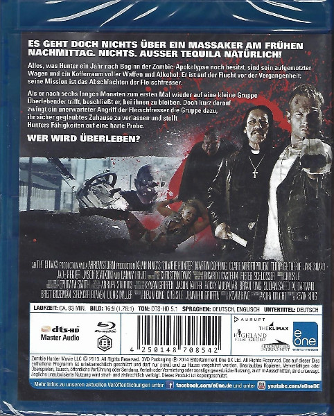 Tauchen Sie ein in die apokalyptische Welt von "Zombie Hunter", präsentiert auf einer hochwertigen Blu-ray. Dieser packende Horror-Film zeigt Ihnen die post-apokalyptische Verwüstung, durchzogen von einer Horde gnadenloser Zombies, die nichts unversucht lassen, um die letzten überlebenden Menschen zu vernichten. Held des Films ist der unaufhaltsame Hunter, gespielt vom charismatischen Danny Trejo, bekannt für seine markanten und intensiven Rollen. An seiner Seite kämpfen Martin Copping und Clare Niederpruem, die in einem erbitterten Kampf ums Überleben brillieren.
