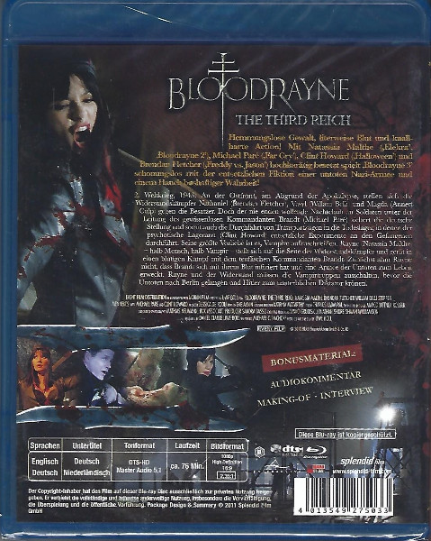 Die Handlung entführt dich in das düstere Szenario des Zweiten Weltkriegs, wo Rayne, eine furchtlose und unwiderstehliche Dhampirin (halb Mensch, halb Vampir), gegen die Nazis kämpft. Natassia Malthe brilliert in der Hauptrolle und liefert eine kraftvolle Darstellung voll ungebändigter Stärke und sinnlicher Ausstrahlung. Gemeinsam mit Brendan Fletcher und Clint Howard stellt sie sich den dunklen Mächten, die die Welt unterjochen wollen.