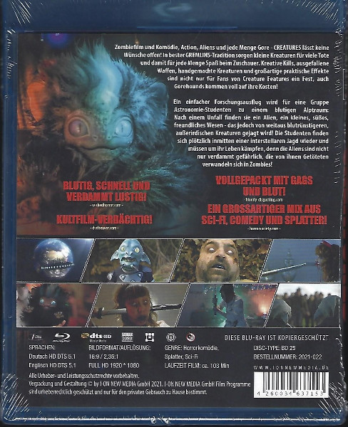 Technisch ist die Blu-ray-Ausgabe von "Creatures" auf dem neuesten Stand: Erlebe tiefes Schwarz, brillante Farben und klaren Sound, der dir das Gefühl gibt, mitten im Geschehen zu sein. Die Disc beinhaltet auch Bonusmaterial, das dir einen tieferen Einblick in die Entstehung des Films bietet.