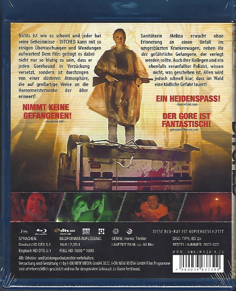 Ditched entführt dich in eine Welt des Schreckens, die du so schnell nicht vergessen wirst. Der Film, gefeiert für seine blutigen und grausamen Szenen, ist genau das Richtige für einen Abend voller Gänsehaut. Ein Meisterwerk, das mit seiner düsteren Atmosphäre und einem Plot, der dich bis zur letzten Minute in Atem hält, überzeugt. Tauche ein in einen "spaßigen und grauenhaft blutigen Ritt!", wie es auf der Cover-Rückseite heißt.