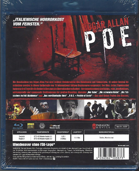 Tauchen Sie ein in die düstere Welt von Edgar Allan Poe mit der Blu-ray-Veröffentlichung „Geschichten des Wahnsinns“ aus der Horror Extreme Collection. Diese Edition ist brandneu und originalverpackt, was sie zu einem unverzichtbaren Juwel für jeden Sammler von Horrorklassikern macht.