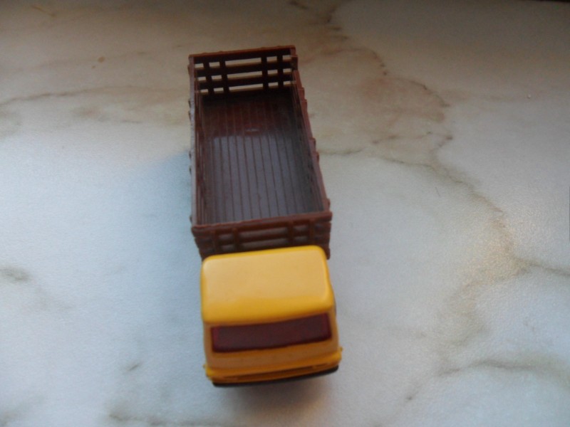 Tauchen Sie ein in die Welt der Nostalgie mit dem exquisiten Matchbox LKW Cattle Truck, einem perfekten Stück für Sammler und Liebhaber von Miniatur-Modellautos. Dieser sorgfältig gestaltete Lastwagen spiegelt die klassische Handwerkskunst wider, für die Matchbox bekannt ist. Der gelb-braune Farbton des Fahrzeugs zusammen mit den deutlich sichtbaren Strukturen des Ladebereichs verleiht ihm ein authentisches und robustes Aussehen.