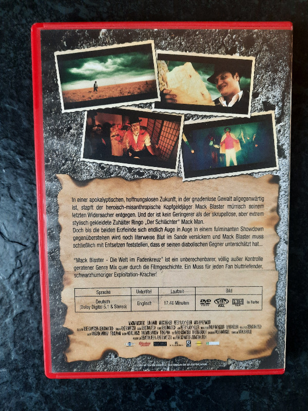 "Irgendwann in einer weit entfernten, apokalyptischen Zukunft stapft der brutale und menschenverachtende Kopfgeldjäger Mack Blaster durch die trostlose Wüste. An einer heruntergekommenen Steinmauer entdeckt er den Steckbrief des schlimmsten Frauenschlächters aller Zeiten, Ringo Mack Man. Für den Blaster ist es eine Frage der Ehre, dass er Ringo zur Strecke bringen muss." (www.crew-united.com)