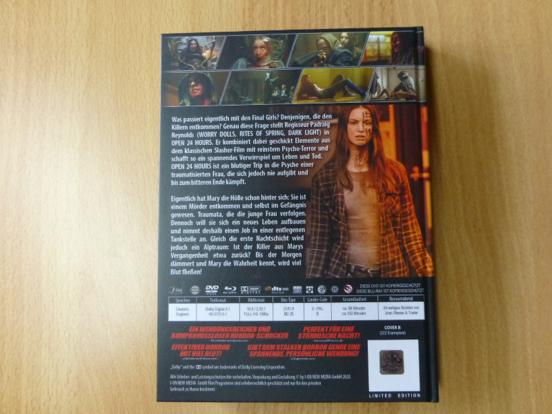 Tauche ein in die Schrecken der Nacht mit dem exklusiven Limited Mediabook von "Open 24 hours". Diese Blu-ray-Edition ist ein Muss für jeden Horrorfan und Sammler, der seine Nerven auf die Probe stellen möchte. Das Mediabook überzeugt nicht nur durch sein auffälliges Cover, das die Spannung und das Unheimliche des Films perfekt einfängt, sondern auch durch Zusatzinhalte, die jedem Horrorliebhaber den Atem rauben werden.