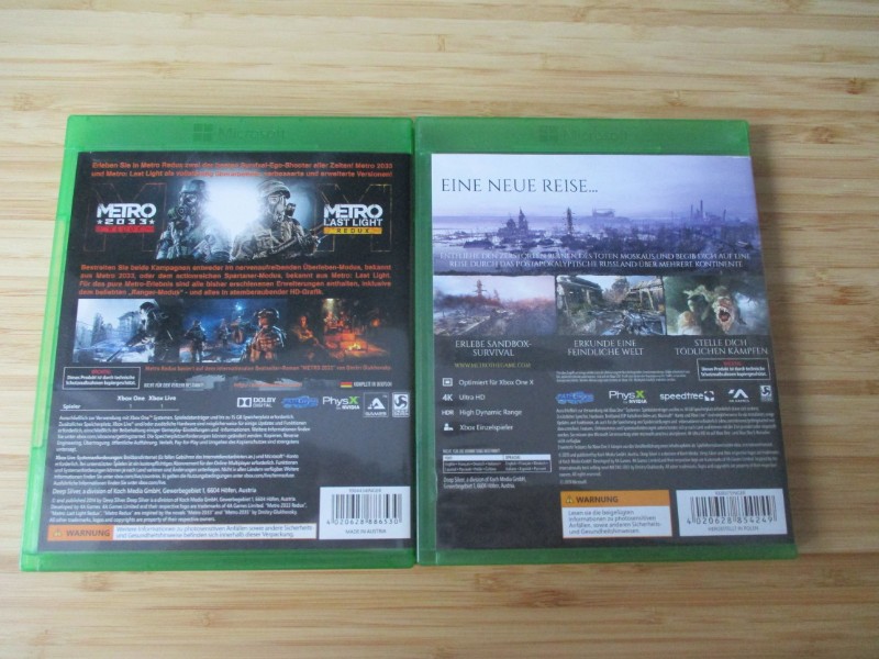 Beide Spielepakete unterstützen 4K Ultra HD und HDR, bieten dir somit ein visuell beeindruckendes Spielerlebnis auf deiner Xbox One. Die beeindruckende Grafik und das atmosphärische Sounddesign werden dich direkt in die eisige Welt von Metro eintauchen lassen.